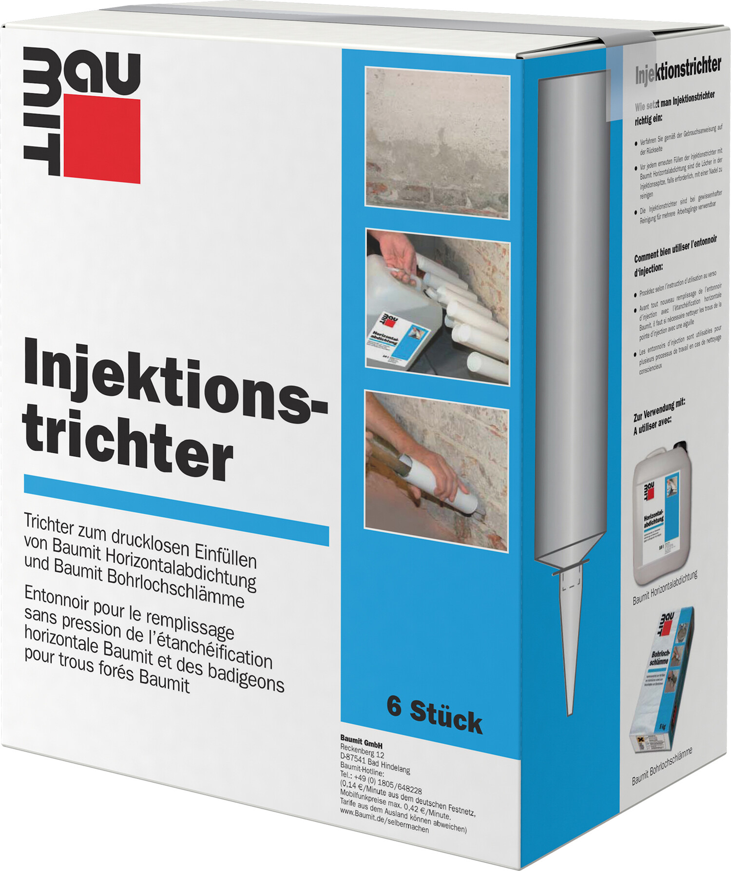 Trichter zum drucklosen Einfüllen von Baumit Horizontalabdichtung und Baumit Dichtschlämme während des Einbaus einer nachträglichen Mauerwerkssperre