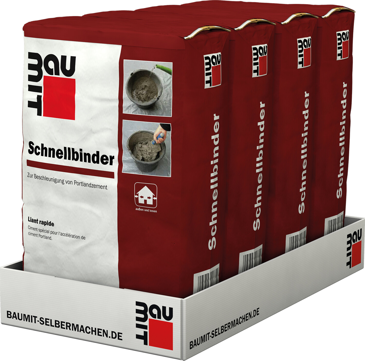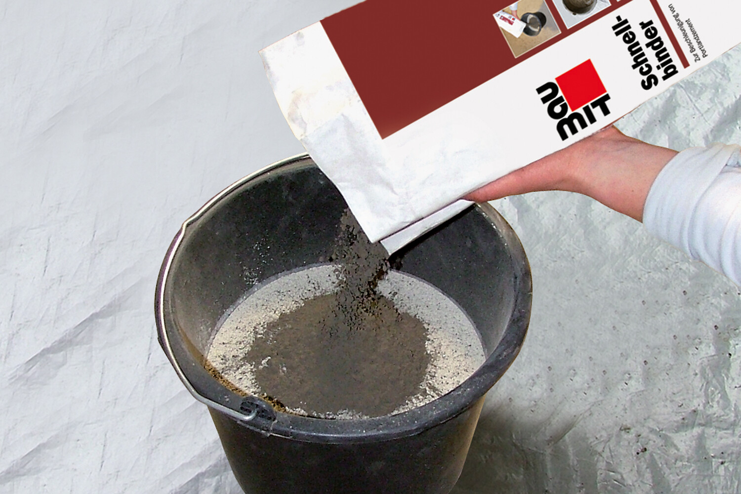 Das mineralische Bindemittel dient zur schnelleren Erhärtung und zur schnelleren Abbindung von Portlandzement oder portlandzementhaltigen Putzen und Mauermörteln.